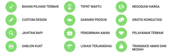 RAHAYU JAYA KONVEKSI adalah KONVEKSI SIDOARJO yang juga menerima pesanan konveksi dalam jumlah kecil maupun besar dengan waktu pengerjaan yang sesuai dengan ketepatan tanpa mengesampingkan kualitas dengan harga yang bersaing. produk yang dihasilkanpun tidak semata untuk memenuhi pesanan pelanggan saja, tetapi dirancang khusus untuk menghasilkan kepuasan sebagai bukti komitmen kami.
